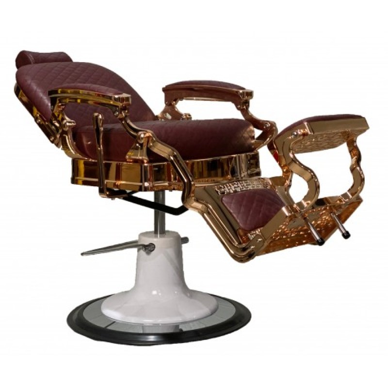 Super sturdy and unique looking chair with a solid rose gold frame and gorgeous burgundy upholstery with a royal looking pattern.